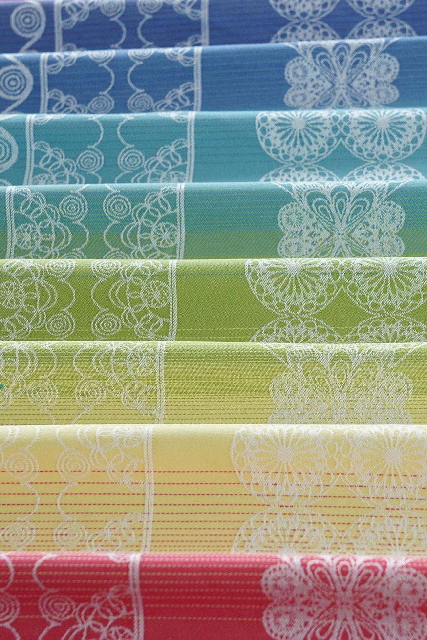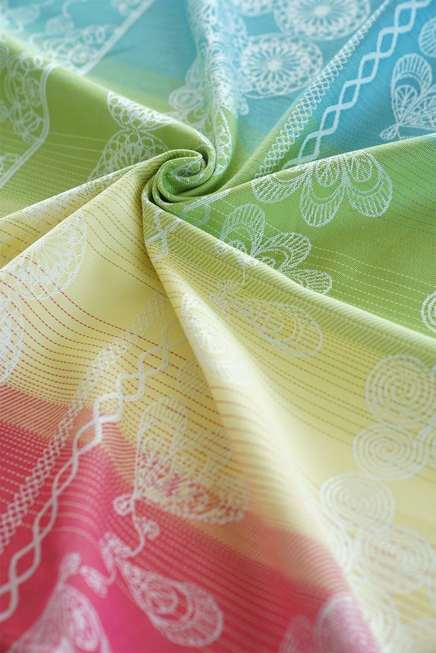 Notre Dantelle Mathilde, avec ses couleurs franches, son beau dégradé de couleurs et ses motifs intemporels, est un modèle dont vous ne voudriez plus vous passer dans votre collection de porte-bébés !