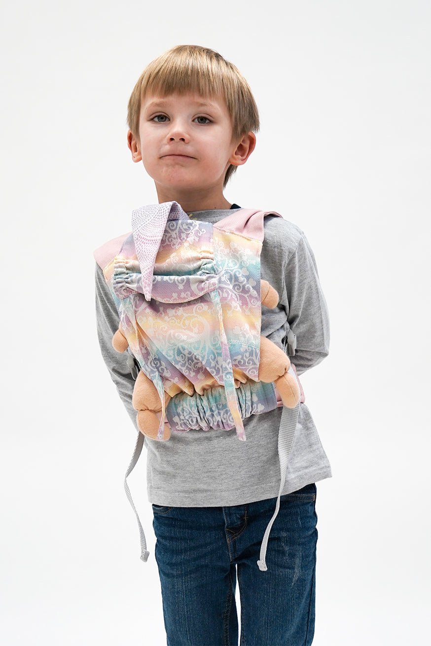 La première KOKADI MINIFLIP - Maintenant dans la populaire Marie au design du pays des merveilles avec des porteurs roses. Fabriqué sur le meilleur coton 100% biologique dans le gradient de couleur pastel comme par magie. Avec le KOKADI Miniflip peut emmener votre chérie avec son ami câlin n'importe où. Le KOKADI Minin peut être ajusté dans un mini-flip à titres rapprochés. La largeur du pont peut être réglée en continu et le jeu de l'enfant avec le mini flip. Les poupées et les jouets câlins jusqu'à 45 cm KOKADI Mini flip. Bien sûr, le Mini Flip a des instructions de liaison illustrées. Bridge 16 cm - 27 cm