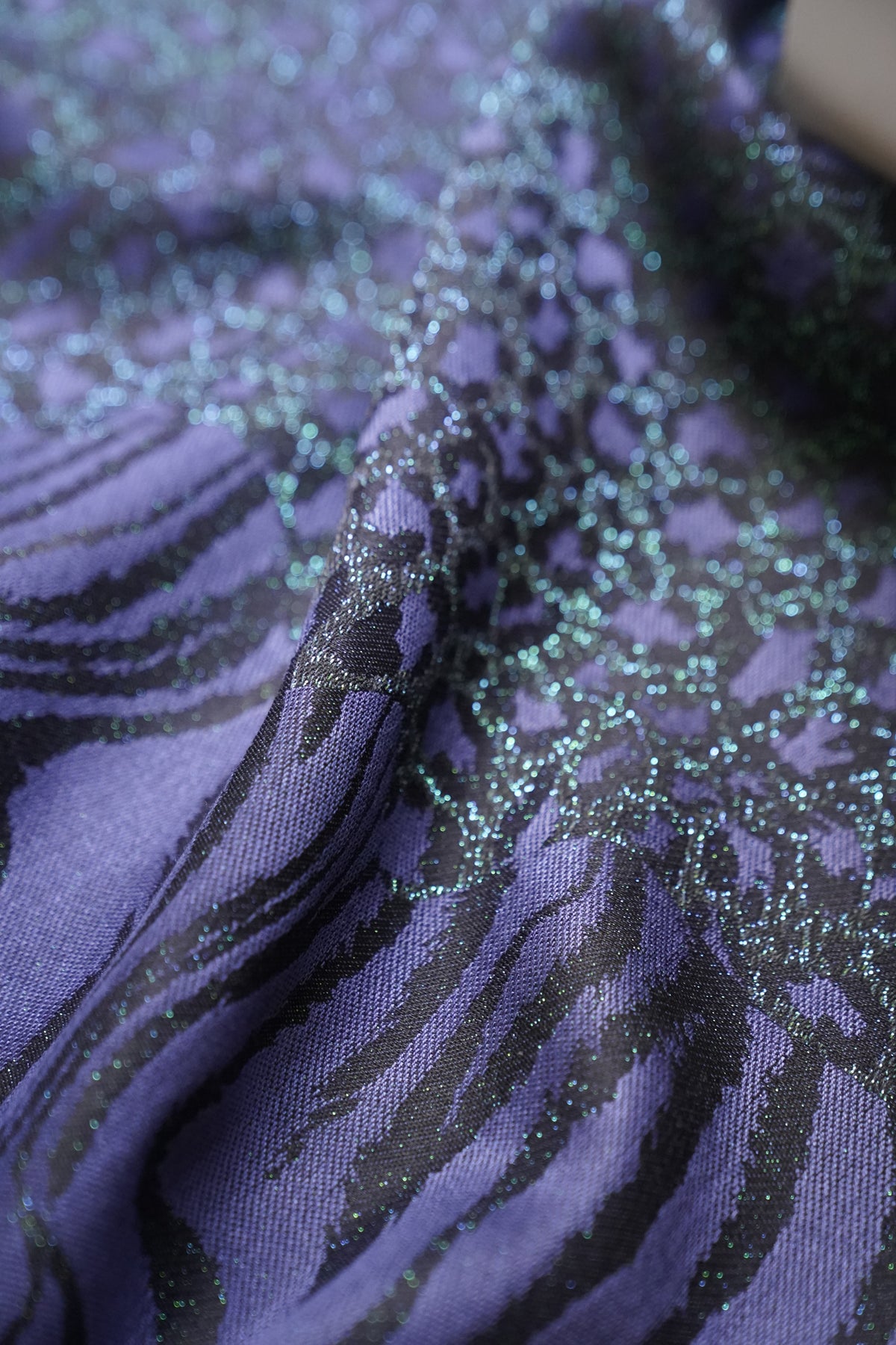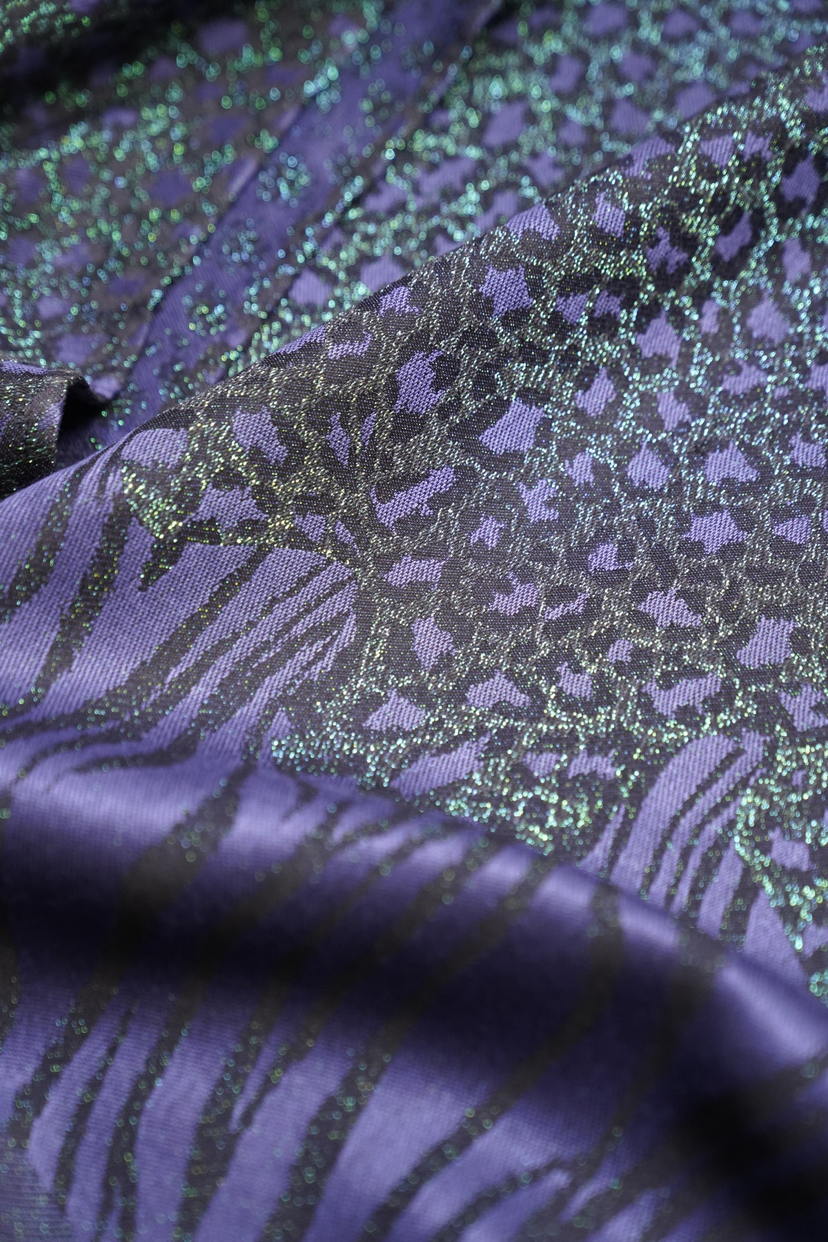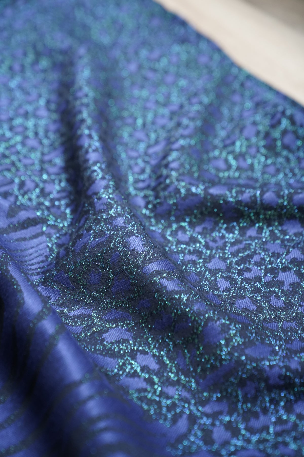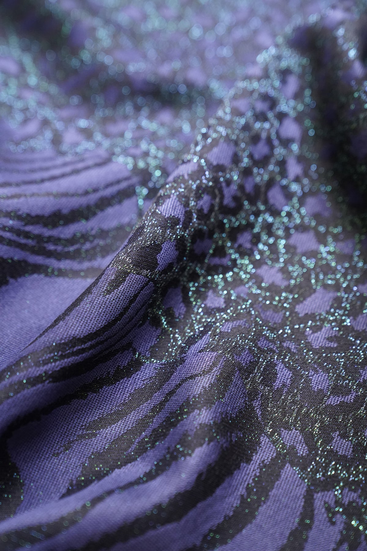 Es gibt Stoffe, die man nur anfasst – und es gibt Stoffe, die man spürt. Das Tragetuch Majestic Motherhood gehört zu den letzteren. Tiefes, sattes Violett fließt wie eine geheimnisvolle Nacht durch das Gewebe, durchzogen von feinem, grünem Glitzer, der sich im Licht wie Sternenregen bricht. Schon beim ersten Griff gleitet der Stoff wie Wasser über deine Hände. Die Viskose schenkt ihm seidige Weichheit, während die Bio-Baumwolle für Stabilität und Halt sorgt. Es ist ein Stoff, der sich anschmiegt, nachgibt und doch stützt – wie eine zweite Haut, die euch beide miteinander verbindet.