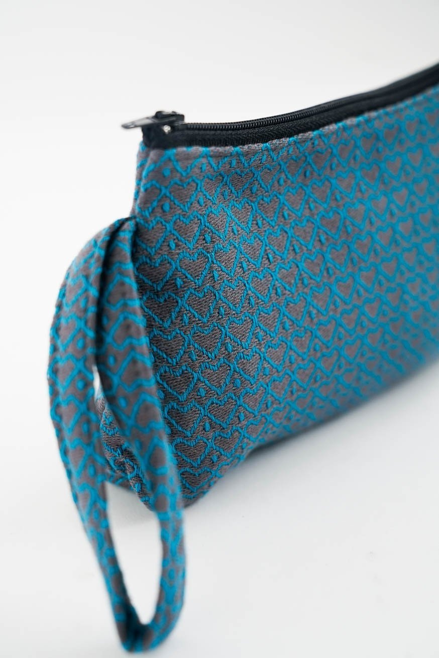 Le tissu du porte-bébé, tissé en jacquard et composé à 100 % de coton biologique, soutient votre bébé de manière sûre et fiable. Notre classique au design intemporel "Heart2Heart Lagoon" dans un magnifique bleu pétrole et un élégant anthracite est orné de nombreux petits cœurs qui changent à la lumière et expriment visuellement l'amour entre vous et votre bébé. Le grammage léger de 170 g/m² est parfait pour les bébés très petits et légers !
