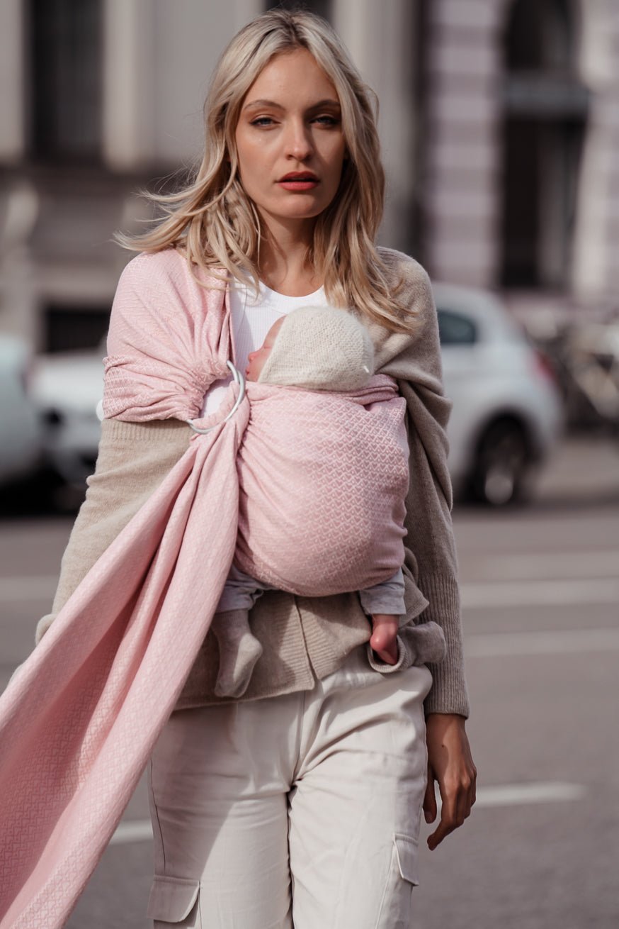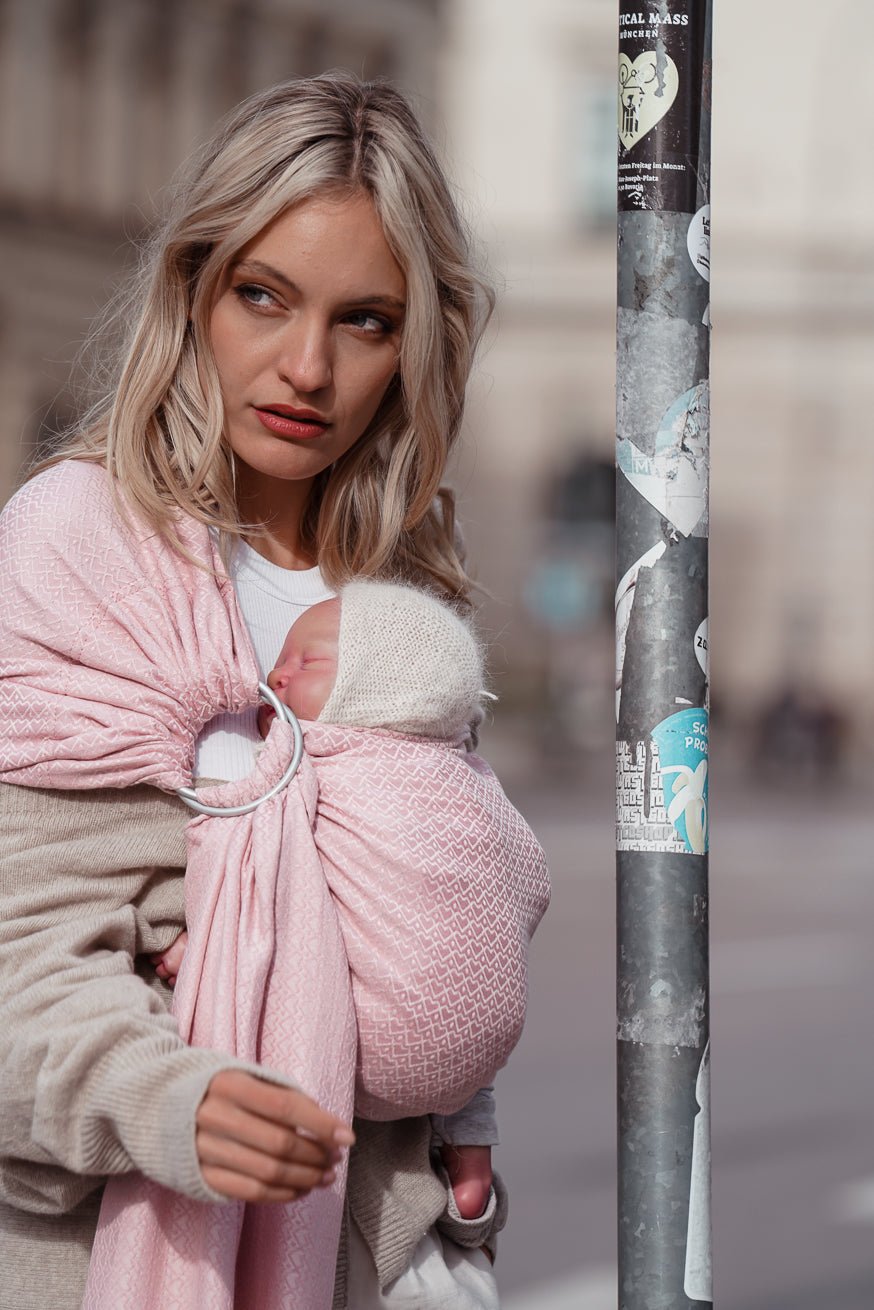 Le rosé simple est orné de cœurs délicatement tissés – ainsi, lorsque vous vous blottissez dans notre adorable écharpe, l'amour est littéralement perceptible pour vous et votre petit chéri. Pour des moments de port uniques avec l'unique KOKADI Sensation de câlin.
