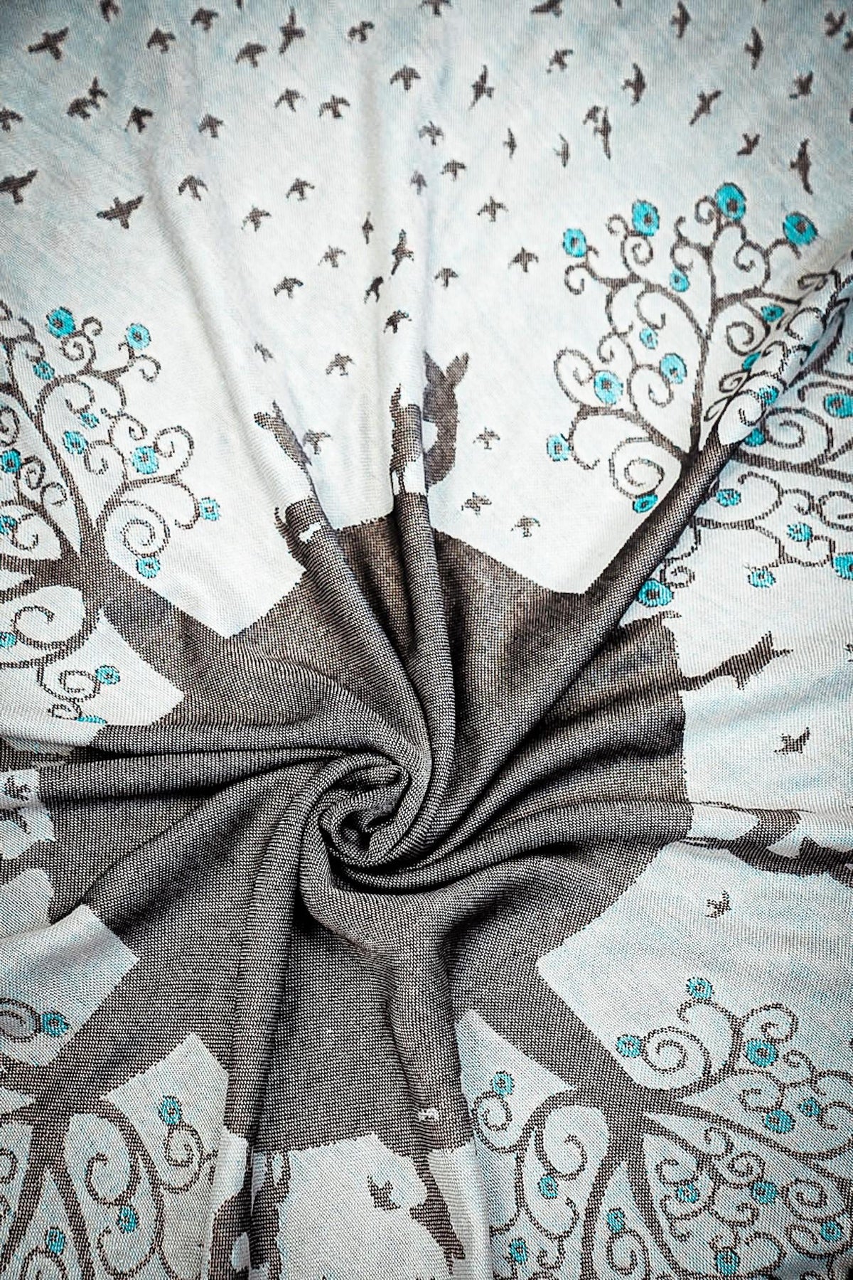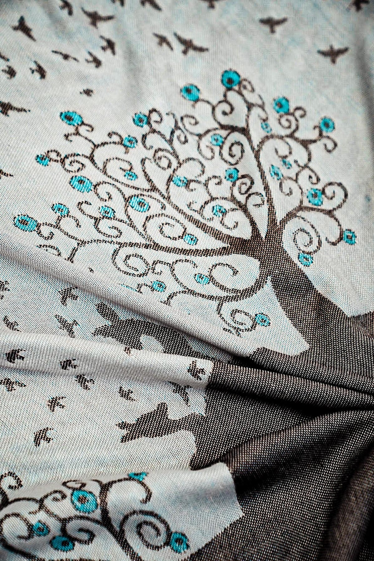 Notre belle couverture câline Blue Nazar au pays des merveilles peut être utilisée de plusieurs façons, par exemple comme couverture d'été légère, écharpe d'allaitement ou comme écharpe élégante pour maman !